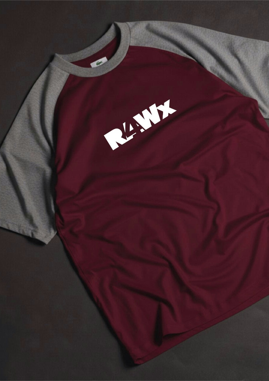 RAWx Classic Graphic Drop Shoulder Raglan T shirt Maroon/Grey