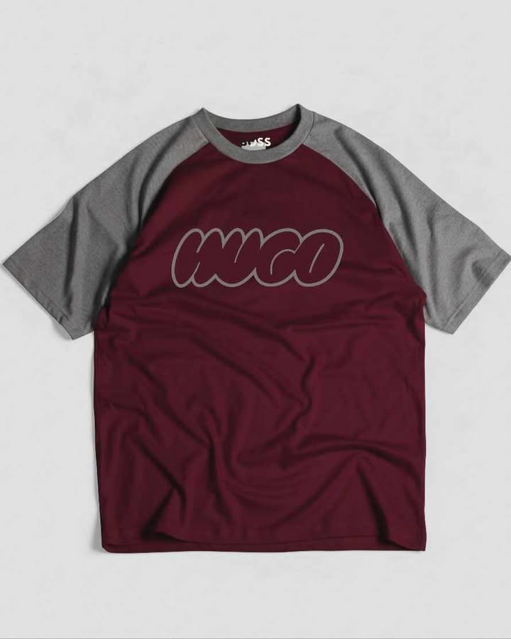 Hugo Logo Printed Crewneck Raglan Maroon/Grey