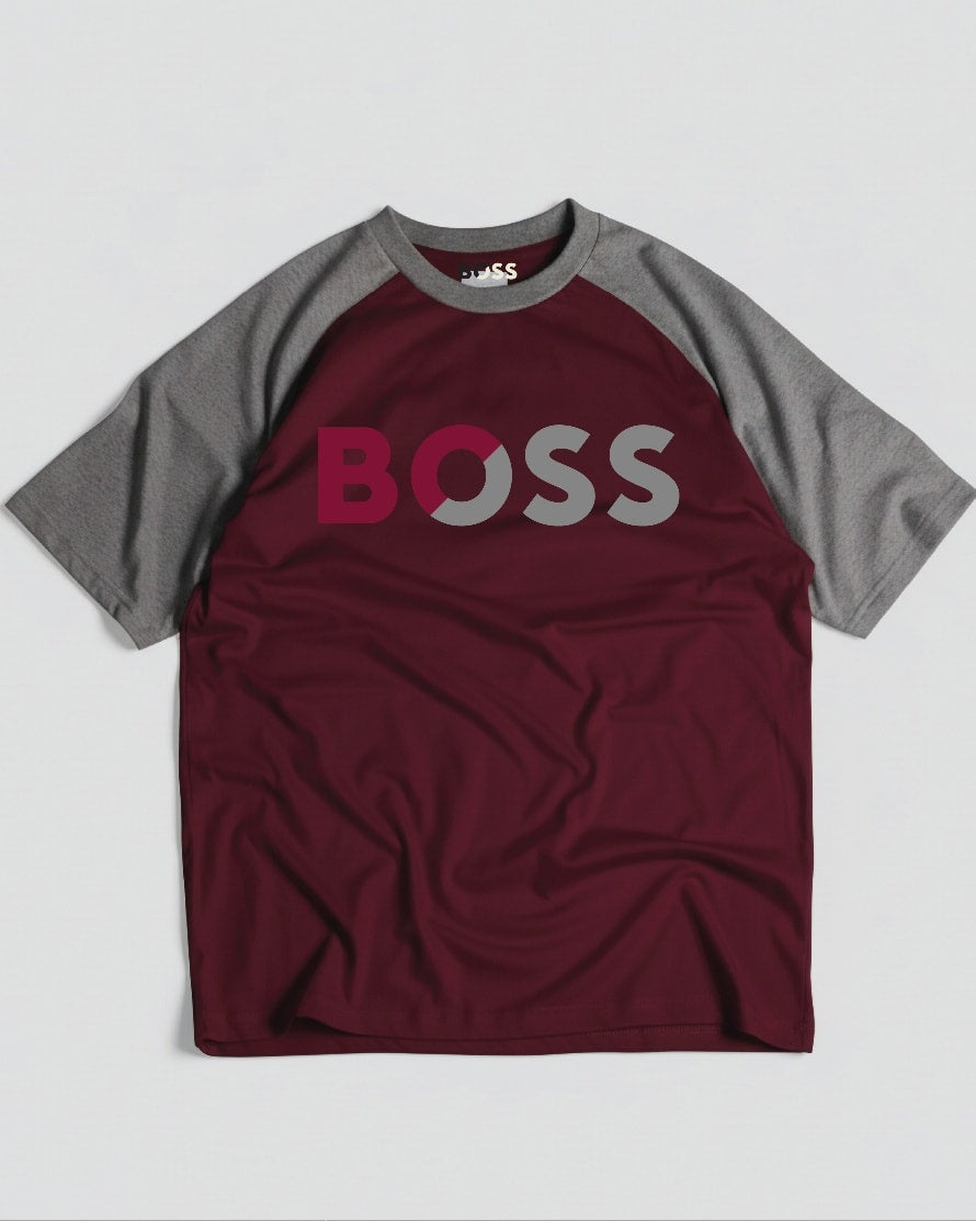 Hugo Boss Logo Printed Crewneck Raglan Maroon/Grey