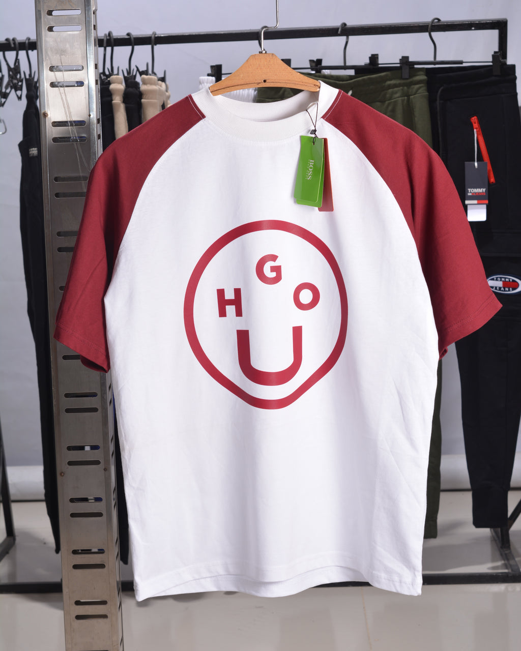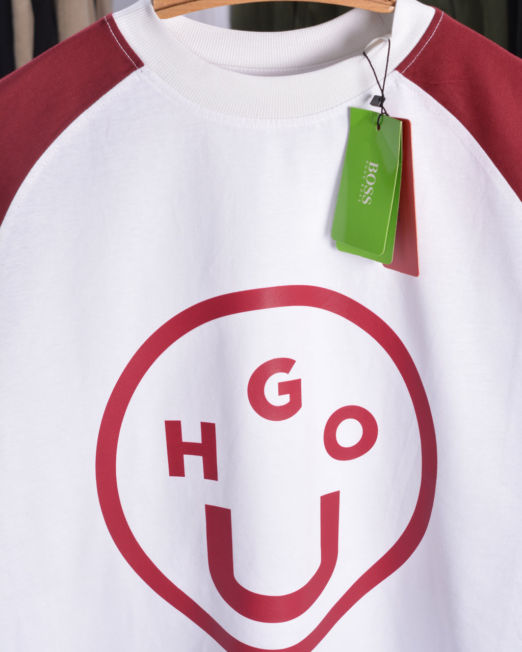 Hugo HUGO NIMPER Drop Shoulder Raglan T shirt White/Maroon