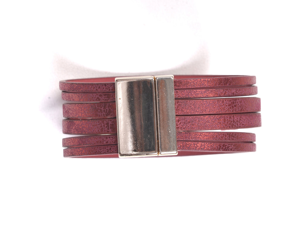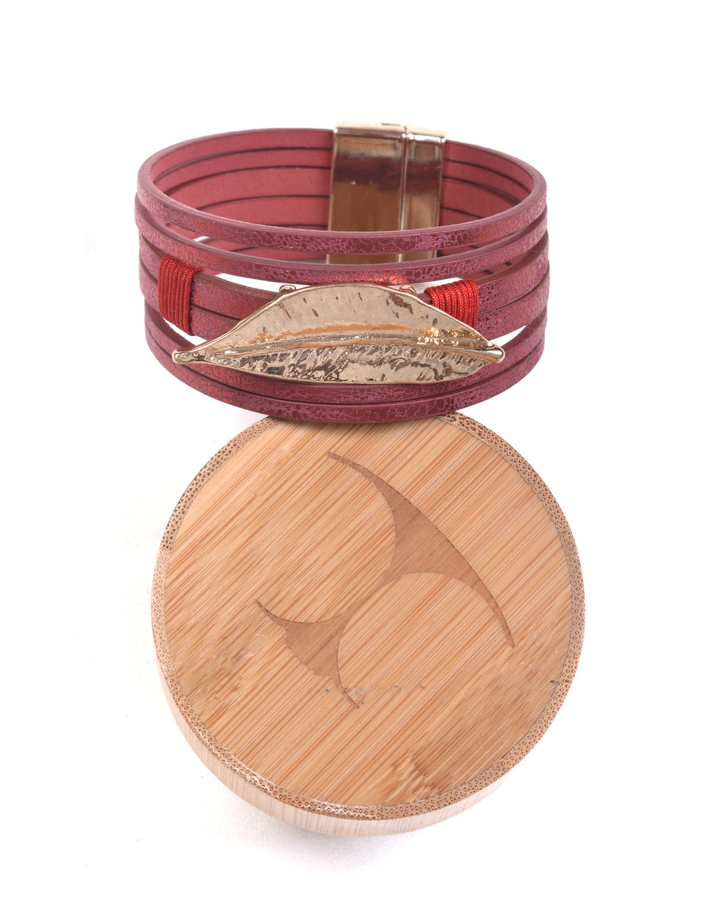 Gold Silver Plated Shinny Leaf Magnetic Ladies Genuine Leather Charm Bracelets