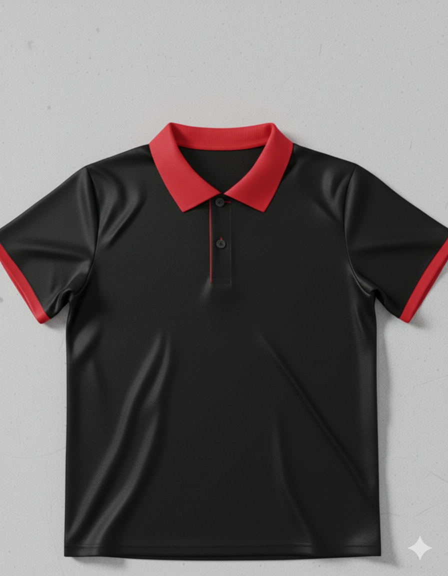 Ringer Polo - Corporate - Performance Mesh Lycra - Black/Red
