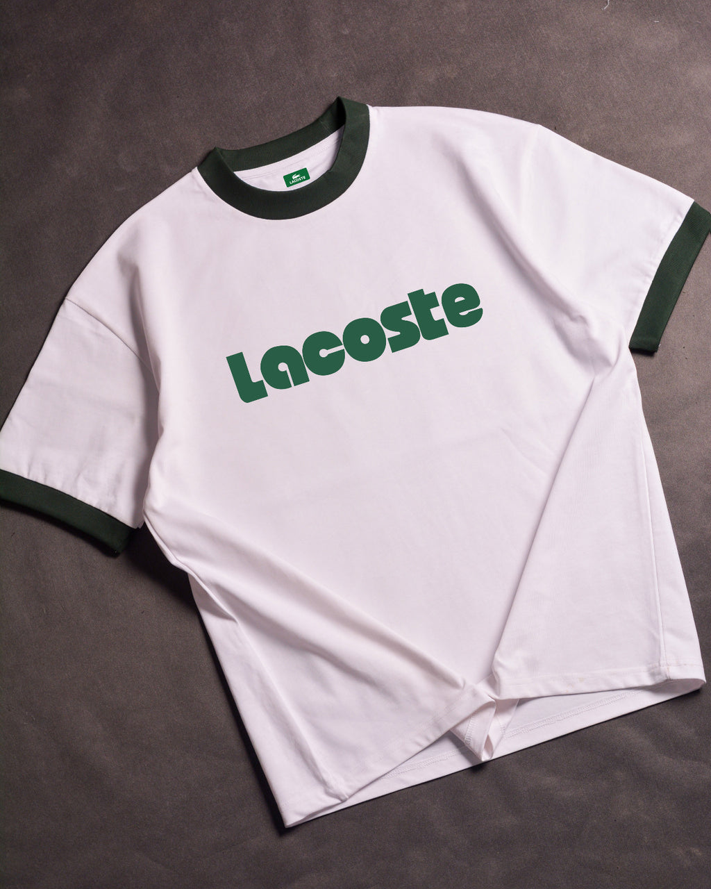 Lacoste Contrast Accent Printed Ringer White/Green Drop Shoulder T-Shirt